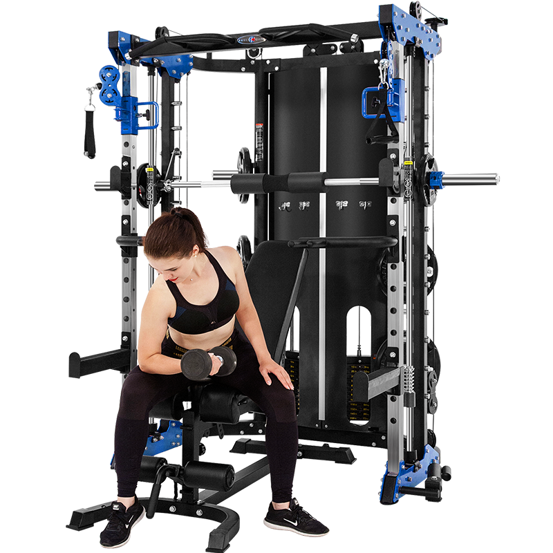 与传统的卧推不同,综合卧推训练器具有更多的功能模块,可以满足不同用户的需求。通过调整不同部分的高度、角度和位置等,可以实现不同难度和类型的卧推训练,从而达到更好的训练效果。此外,该器械还配备了多个支架和配件,可以适应不同的卧推训练类型,例如平卧推、斜卧推、哑铃卧推等。