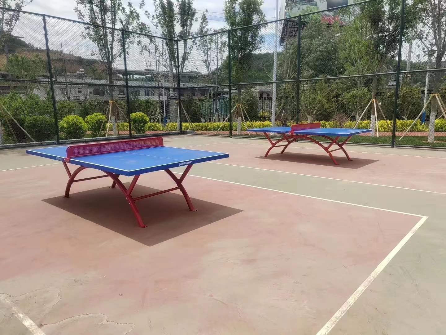 室外乒乓球台即户外钢结构乒乓球休闲娱乐设备。它是由特制的钢构架和加厚的高密度板材制成,耐用且易于维护。室外乒乓球台是户外运动器材中的一种,该器材不仅适用于各种室外运动场所(如:公园、学校、社区、酒店等),而且具有较高的观赏性,也可供家庭使用。