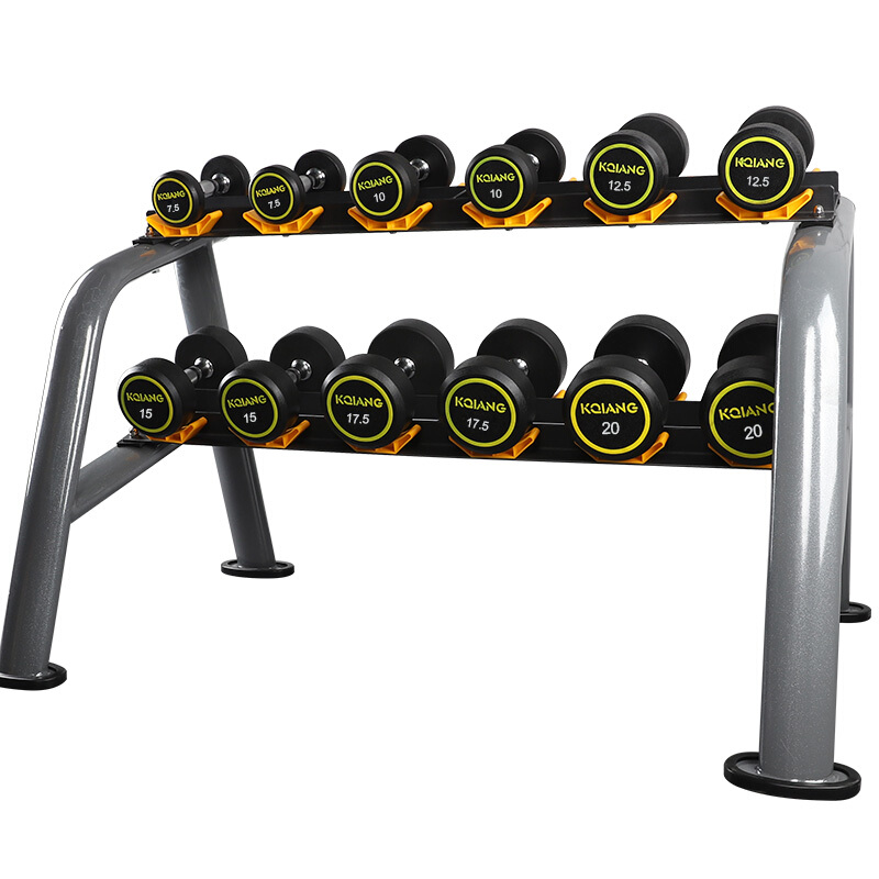 康强商用包胶哑铃男士健身器材健身房包胶固定式哑铃 7.5KG-20KG含6付哑铃架